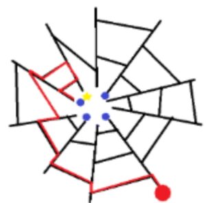 中央に複数の出発点、そこから放射状に線が伸び、外側の「当たり」に辿り着く感じ。