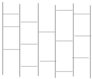 子どもの頃のあみだくじは、縦と横の線が交互に伸びた、こんな形でしたよね。