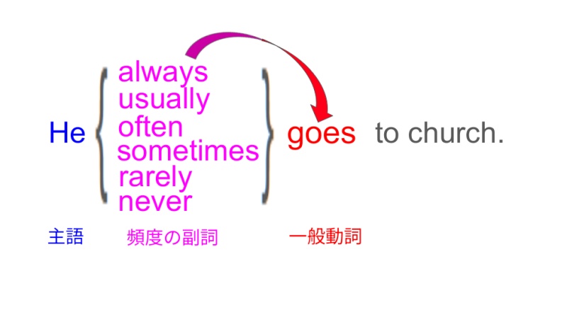 **be動詞以外では「一般動詞の直前」**が定位置。