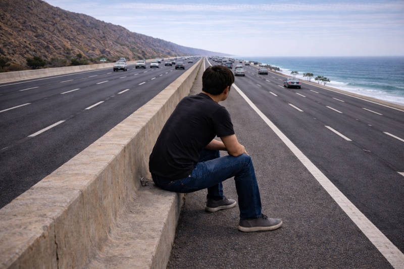 もう二度とフリーウェイの路肩には止まりたくないですけどね。
