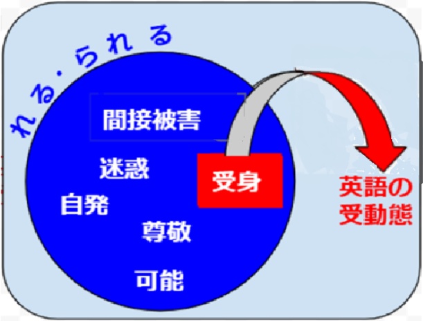 日本語の「れる・られる」は、英語の受け身よりはるかに守備範囲が広い。