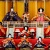 On the third level, there are five male musicians. Each musician plays a different instrument.